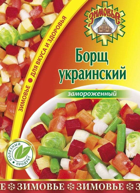 Состав: свекла, картофель, морковь, сельдерей, лук порей, капуста белокачанная, томаты, фасоль стручковая.