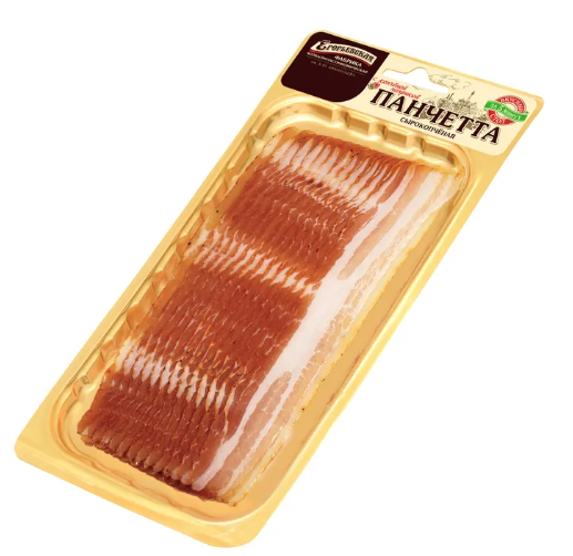 Состав: грудинка свиная б/к, нитритно-посолочная смесь (соль пищевая, фиксатор окраски Е250), декстроза, сахар, паприка, экстракты пряностей (тмин, перец), усилители вкуса и аромата: Е621, Е627, Е631; антиокислитель Е316, регулятор кислотности Е330, консерванты: Е223, Е262; стартовая культура. Возможно наличие сои, молока, глютена, яиц, горчицы, кунжута и продуктов их переработки.