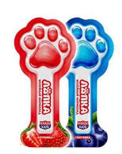 Состав: очищенная вода, загустители (конжаковая медь, каррагинан), регуляторы кислотности (лимонная кислота, яблочная кислота, цитрат натрия), подсластители (цикламат натрия, ацесульфам калия), консервант (сорбат калия), ароматизаторы (яблоко, манго, клубника, виноград. персик), красители Е102, Е110, Е129, Е133.