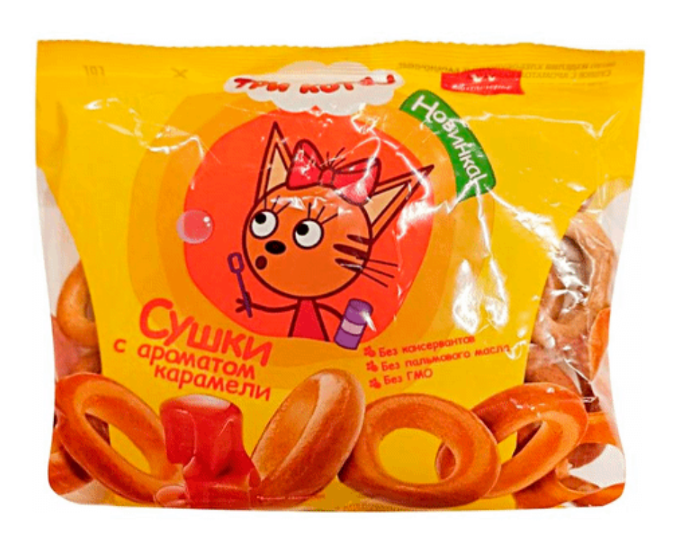Состав: мука пшеничная первого сорта, вода питьевая, сахар, масло подсолнечное рафинированное дезодорированное, соль йодированная (соль, йодат калия, агент антислеживающий ферроцианид калия), дрожжи прессованные, ароматизатор натуральный Карамель, ароматизатор Тирамису.